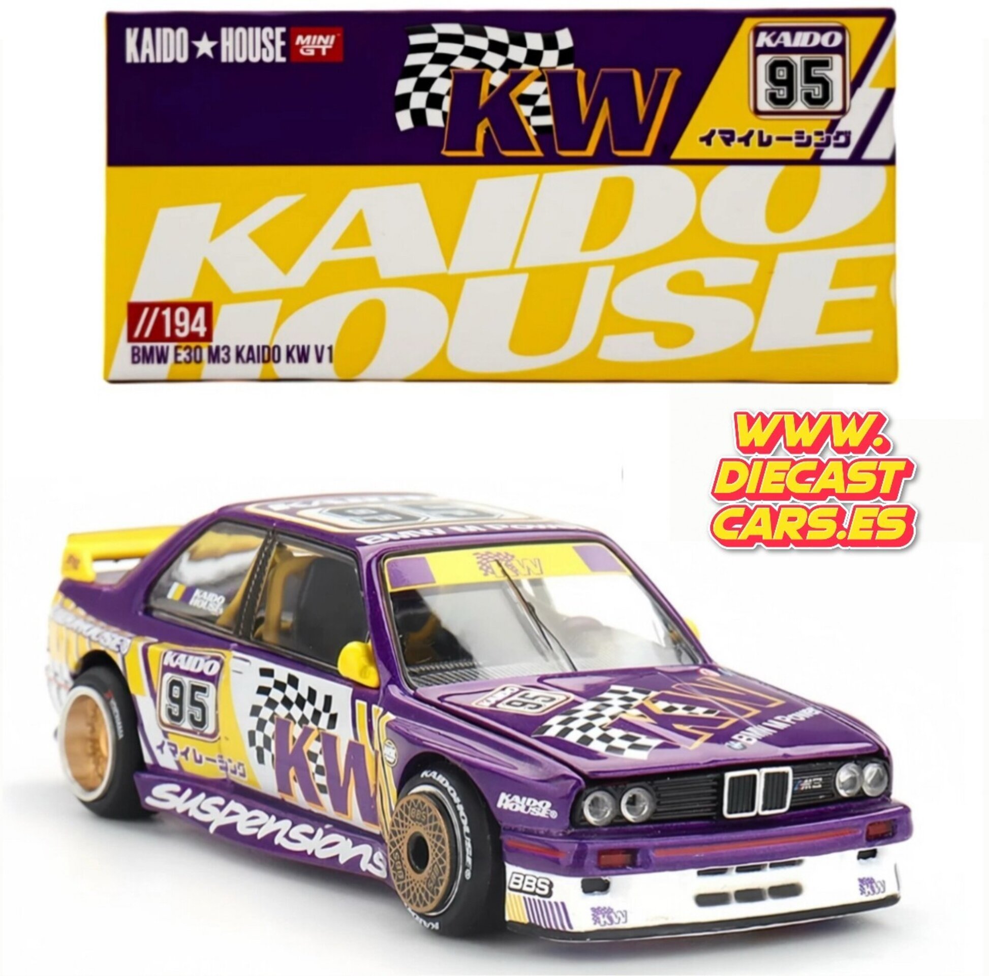 Mini GT Kaido House BMW E30 M3 Kaido KW V1 Púrpura //194 Diecast 1:64